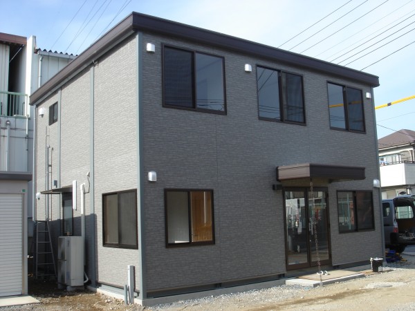 レンガ調サイディングは、グレー系で落ち着いた雰囲気です。